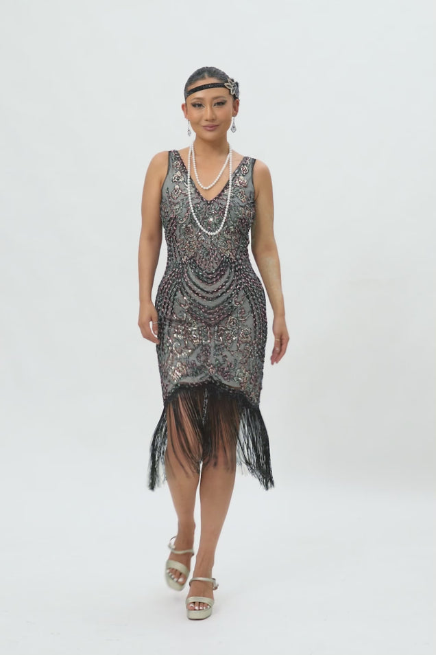 Occasion: The unique and exquisite sequins embroidery embellished this 1920s flapper dress, which is perfect for Great Gatsby Parties, Weddings, Proms or any other Special Occasions! Flapper your way into style this season with this gorgeous fringed, jaw dropping 20s style dress. This art deco inspired dress will have heads turning at any parties.