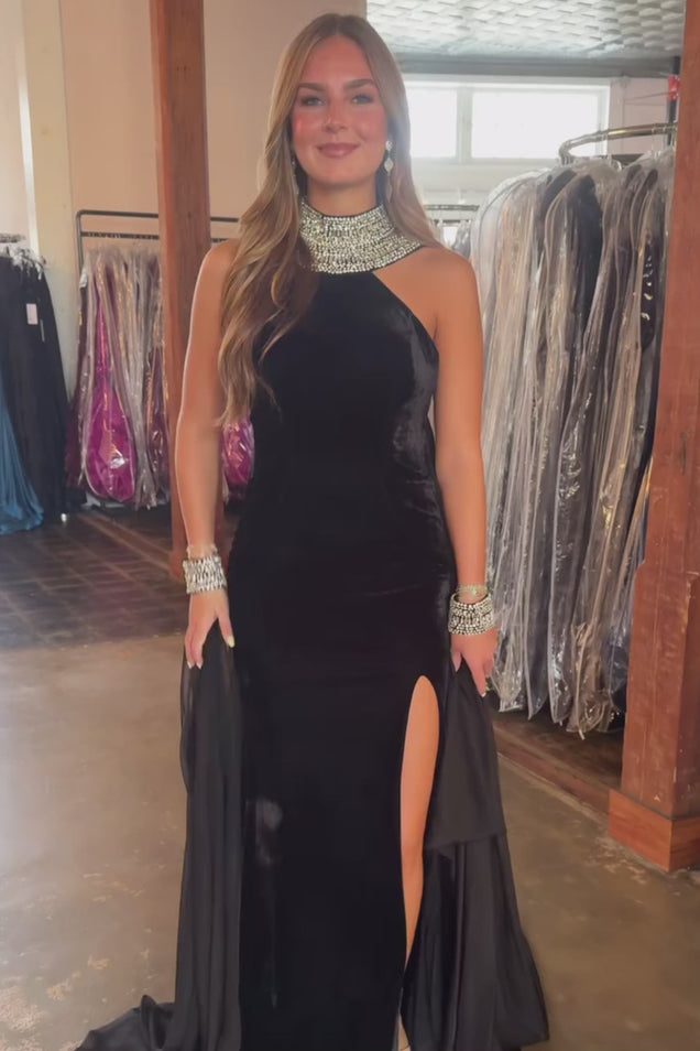 Sparkly Black Mermaid Beaded Maxi Prom Dress with Cape
