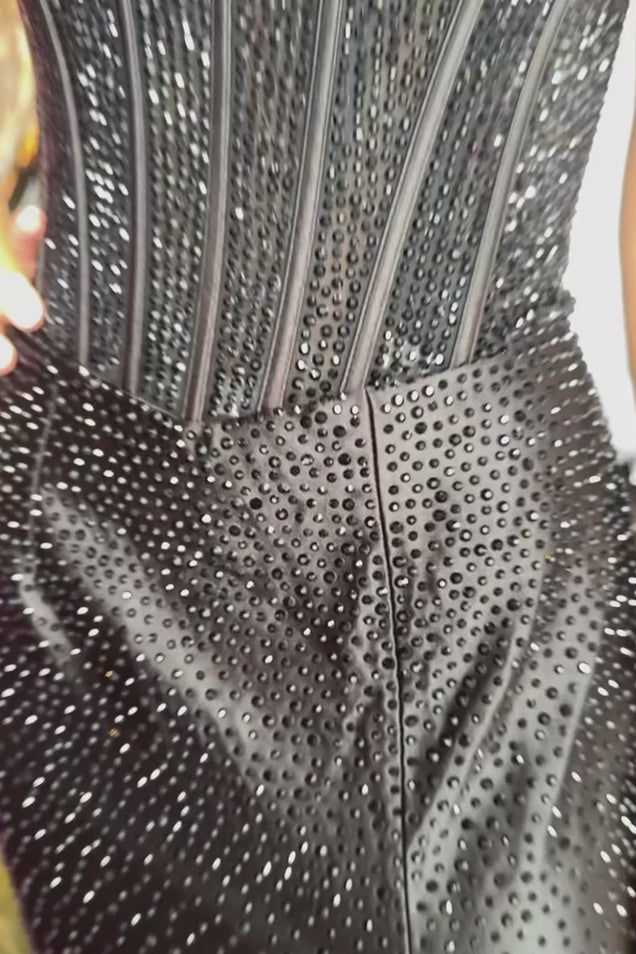 Sparkly Black Sweetheart Beaded Corset Maxi Prom Dress with Slit