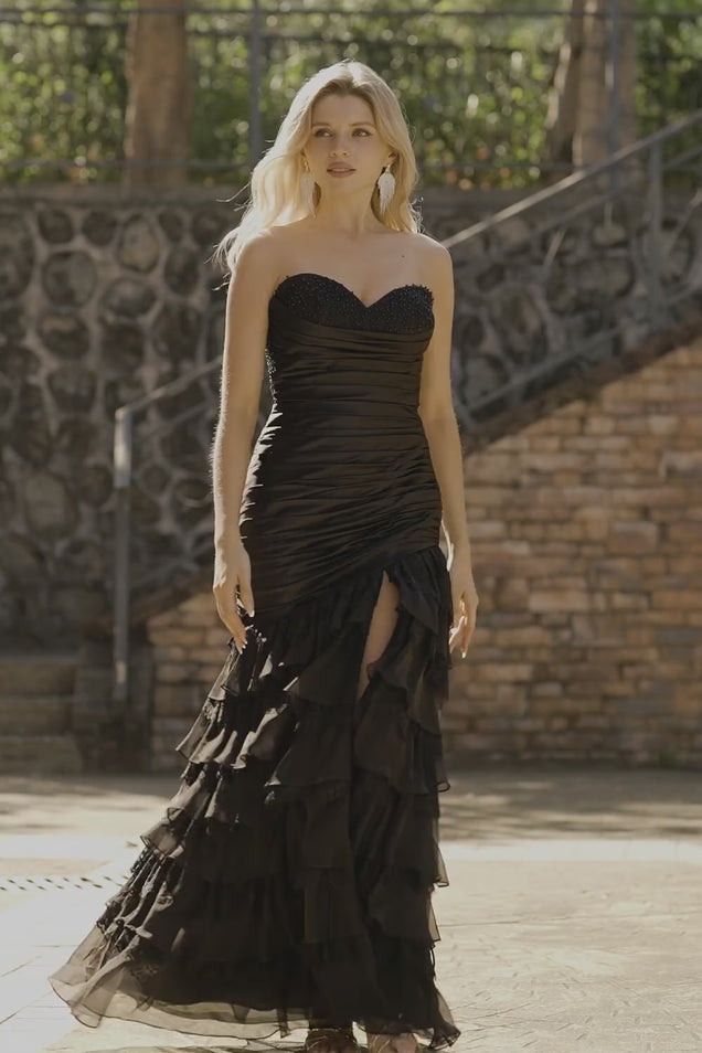 Black Ruched Long Mermaid Prom Dress with Beading