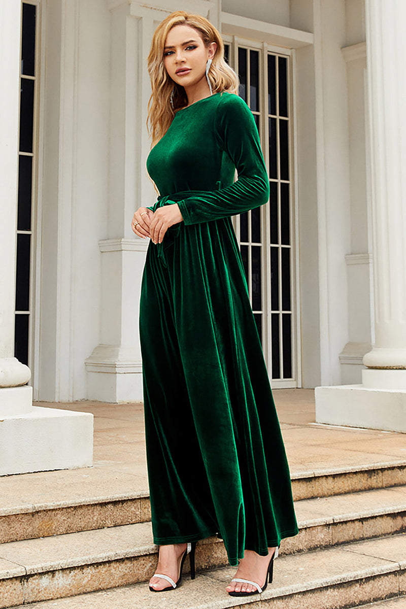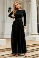 A Line Jewel Neck Black Velvet Holiday Party Dress