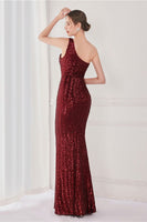 Colorful One Shoulder Sequined Mermaid Evening Dress