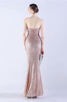 Dark Green Strapless Sequin Sheath Formal Dress with Feather