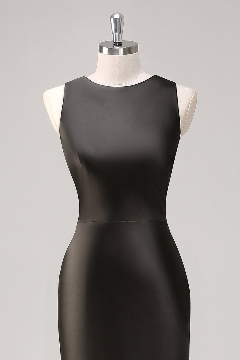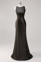 Dark Grey Sheath Satin Sleeveless Long Formal Dress