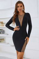 Fashion Sheath Jewel Black Party Dress with Long Sleeves