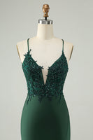 Glitter Dark Green Tight V Neck Beaded Party Dress