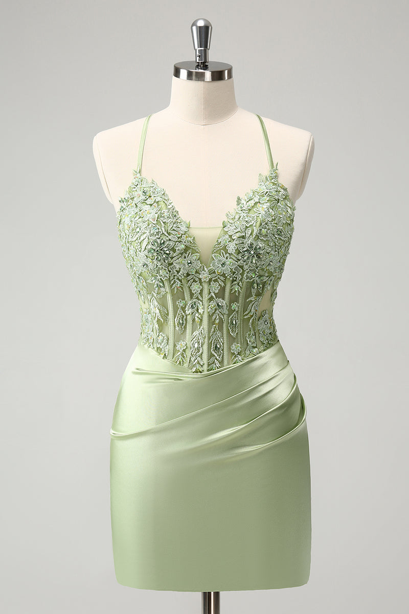 Glitter Green Beaded Appliques Tight Corset Party Dress