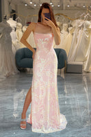 Mermaid Lace-Up Back Pink Prom Dress with Appliques