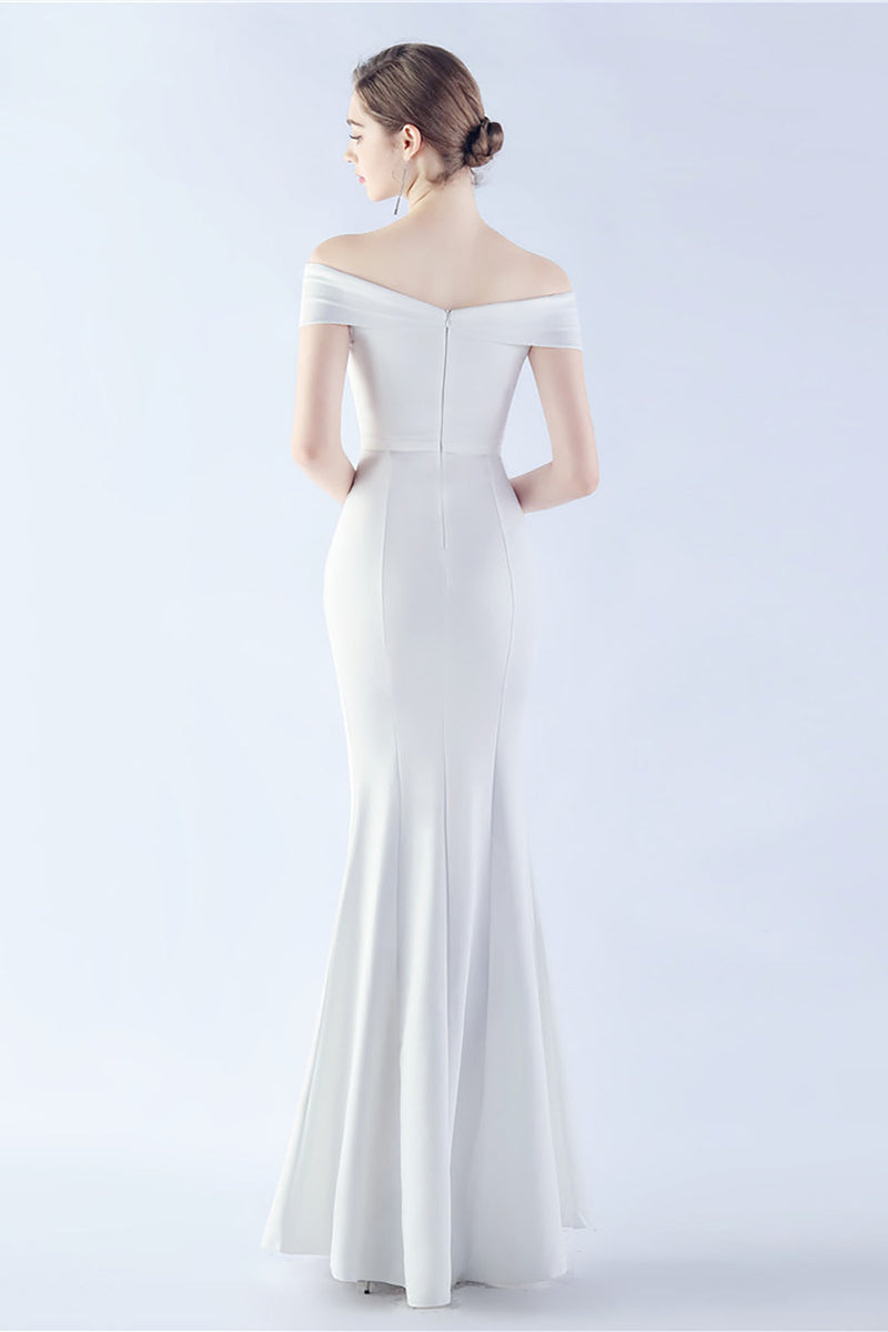 Navy Off the Shoulder Mermaid Crepe Formal Dress with Slit