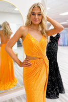 Orange Sequined Lace Up Back Long Prom Dress with Slit