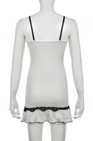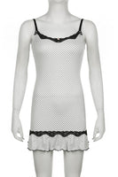 Short Mini Spaghetti Straps Little White Dress With Polka Dots