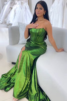 Sparkly Dark Green Mermaid Long Corset Prom Dress with Slit