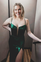 Sparkly Dark Green Mermaid Simple Prom Dress With Slit