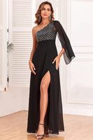 Sparkly One Shoulder Black Formal Dress with Sequins
