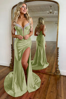 Sparkly Royal Blue Mermaid Beaded Spaghetti Straps Corset Long Prom Dress with Slit