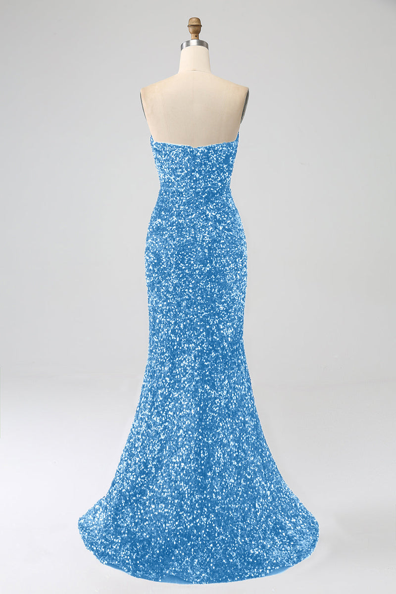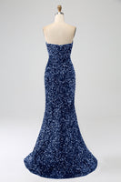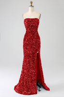 Pink Mermaid Strapless Sequins Long Prom Dress With Slit