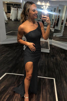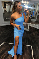 Red One Shoulder Sequins Mermaid Prom Dress with Slit