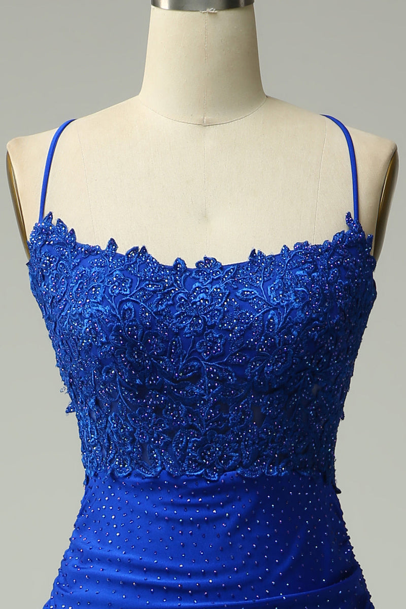 Mermaid Halter Royal Blue Long Prom Dress with Beading