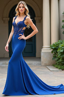 Royal Blue Mermaid Cut-Out Long Prom Dress with Lace