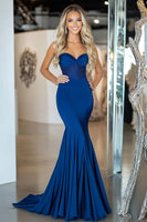 Royal Blue Satin Mermaid Strapless Prom Dress with Beading