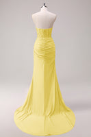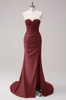Sparkly Royal Blue Mermaid Strapless Corset Appliques Long Prom Dress with Slit