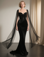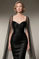 Black Satin Mermaid Maxi Mother of the Bride Dress with Cape