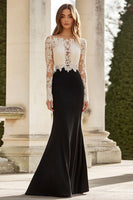 Black White Lace Floor-Length Mother of the Bride Dress with Long Sleeves