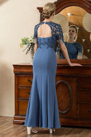 Blue Mermaid Open Back Mother of the Bride Dress with Slit
