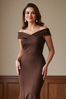Brown Off the Shoulder Satin Maxi Mermaid Mother of the Bride Dress