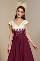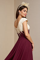 Burgundy Satin A Line Maxi Mother of the Bride Dress with Appliques