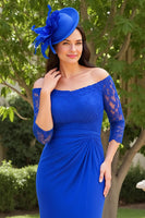 Dark Green Sheath Off The Shoulder Long Wedding Guest Dress with Slit