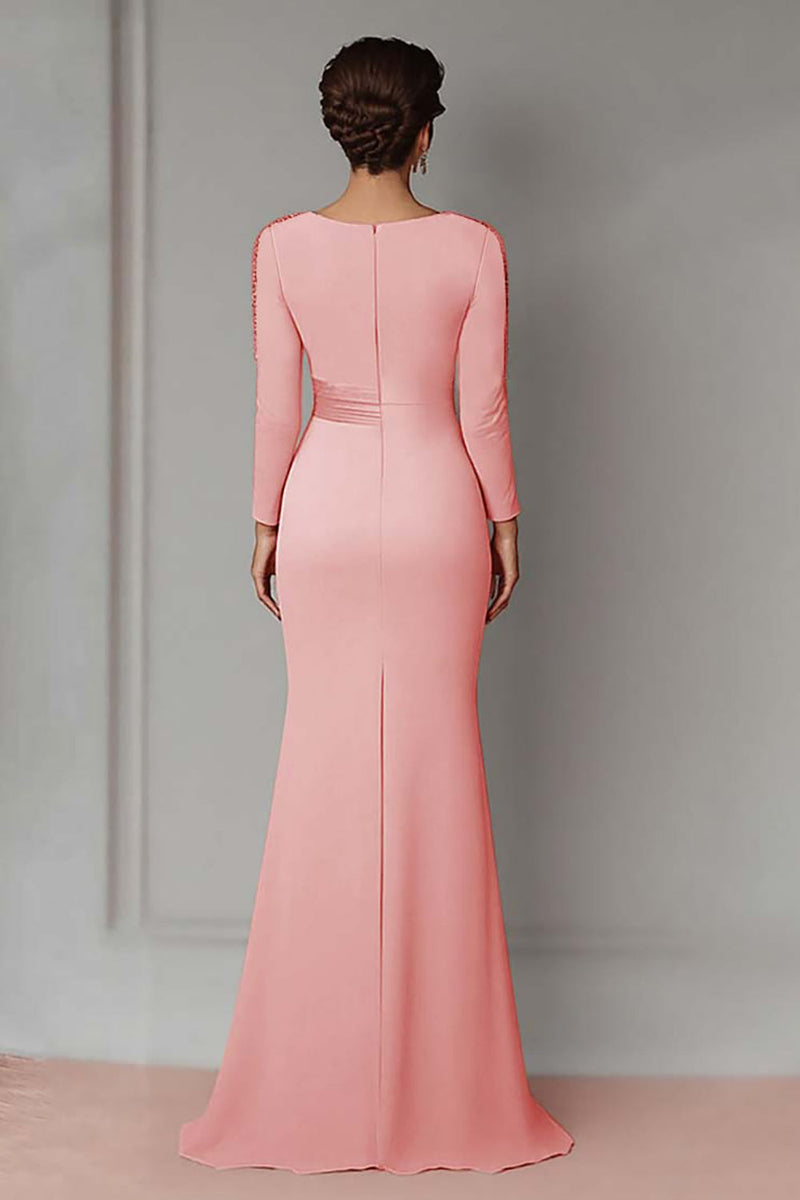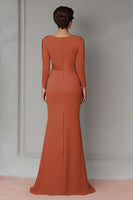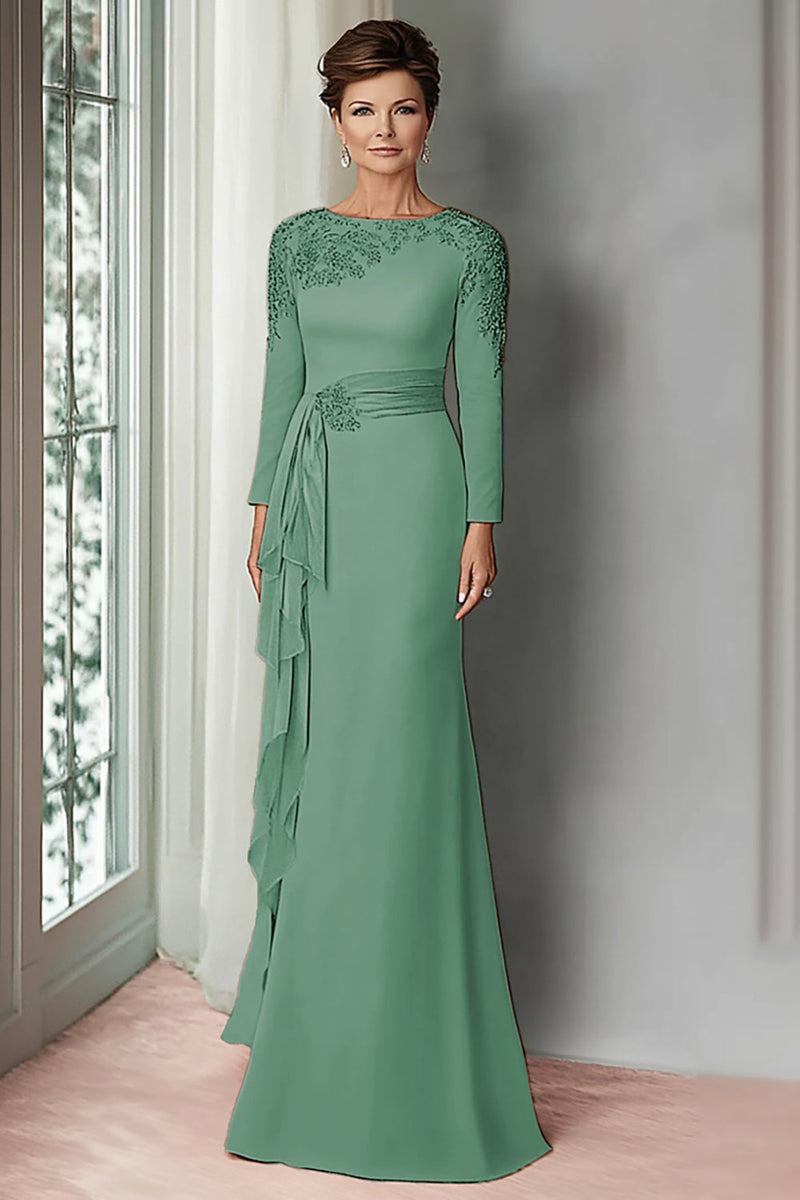 Eucalyptus Satin Sheath Mother of the Bride Dress with Long Sleeves