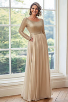 Golden Scoop Neck Chiffon Mother of the Bride Dress with Pleated