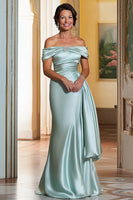 Mint Sheath Satin Off the Shoulder Long Mother of the Bride Dress