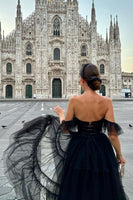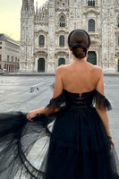 A-Line Sweetheart Tulle Black Short Prom Dress