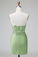 Glitter Dark Green Beaded Tight Appliques Short Prom Dress