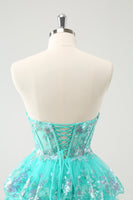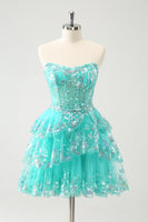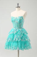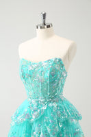 Glitter Green A-Line Sequined Tiered Strapless Short Prom Dress