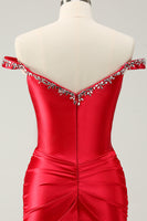 Glitter Red Tight Off-the-Shoulder Beaded Short Prom Dress