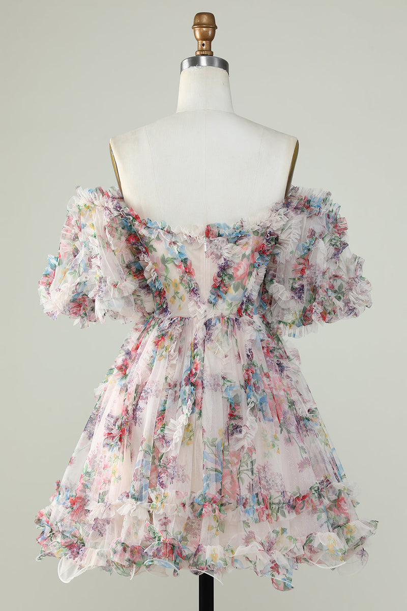 Off the Shoulder Short Prom Dress with Floral Print
