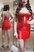 Royal Blue Strapless Satin Tight Short Prom Dress