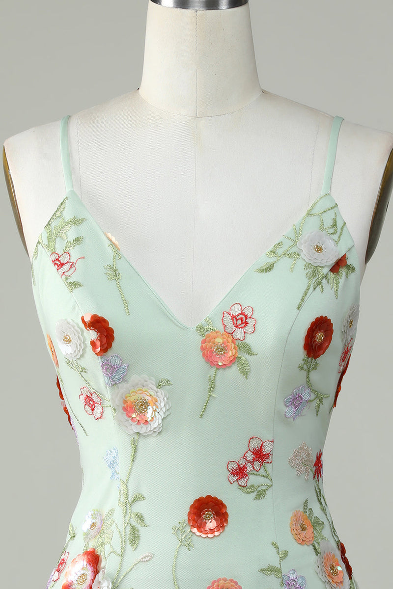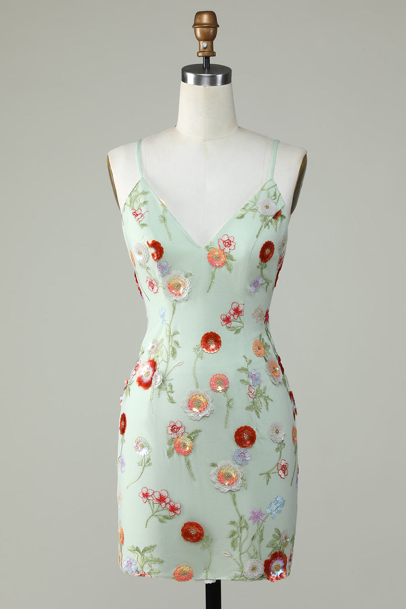 Spaghetti Straps Olive Sequins Backless Short Prom Dress
