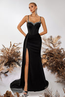 Sparkly Black Mermaid Spaghetti Straps Maxi Prom Dress with Side Cape