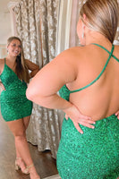 Sparkly Orange Sequins Halter Bodycon Short Prom Dress