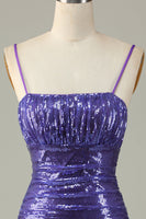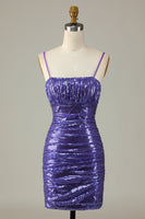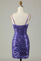 Sparkly Purple Sequins Spaghetti Straps Tight Short Party Dress