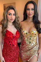Sparkly Red Mirror Short Prom Dress With Sequins