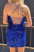 Sparkly Royal Blue Sequins Spaghetti Straps Bodycon Short Party Dress