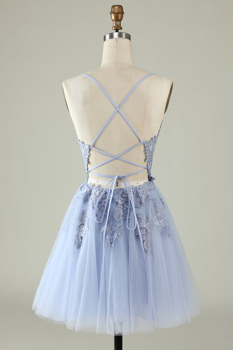 V-Neck Blush Beaded Short Prom Dress with Appliques
