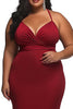 Red Satin Spaghetti Straps Sheath Ruched Plus Size Prom Dress