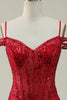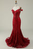 Mermaid Cold Shoulder Sequins Burgundy Long Prom Dress
