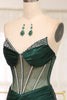 Dark Green Mermaid Satin Strapless Long Corset Prom Dress With Slit
